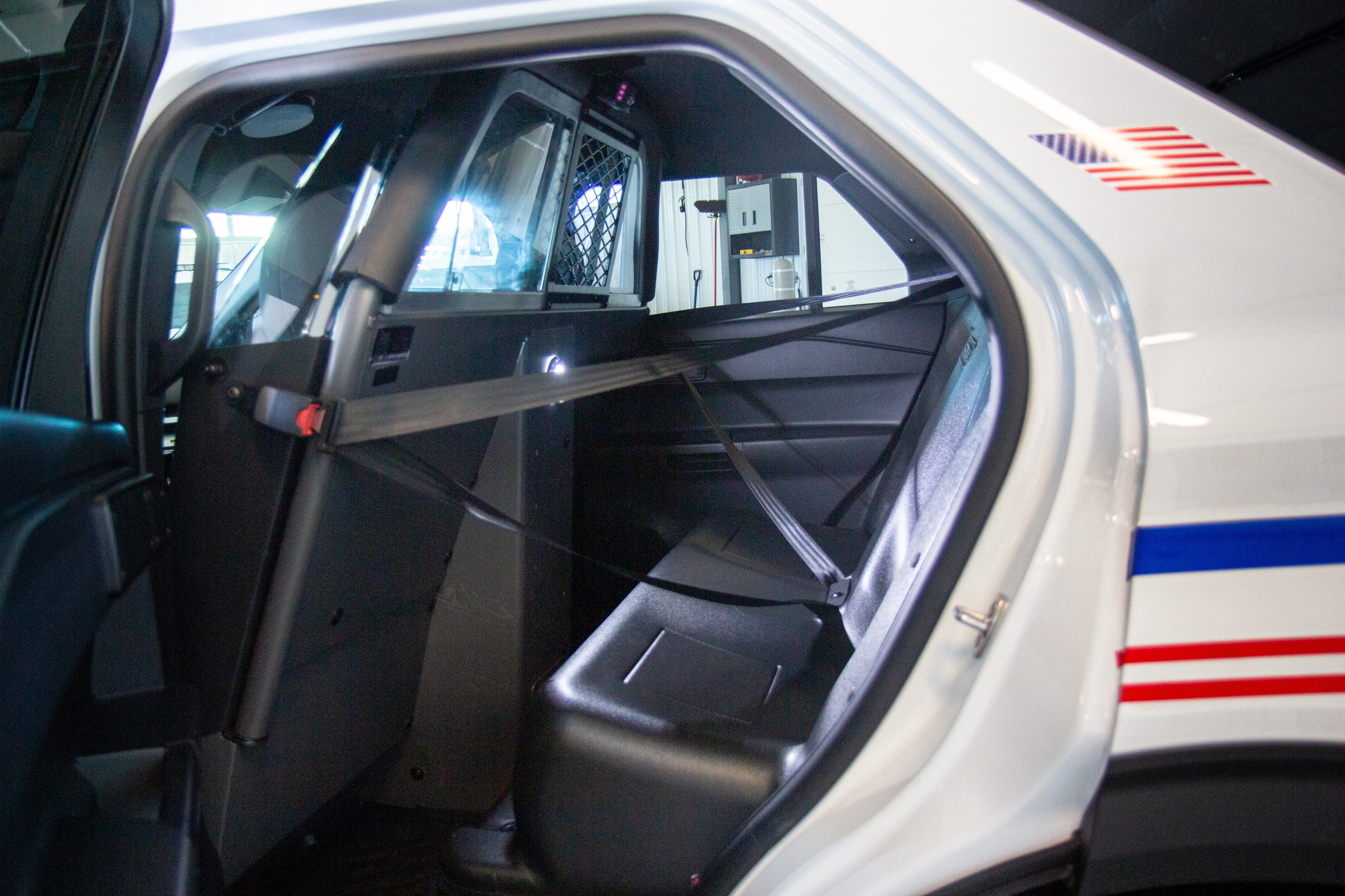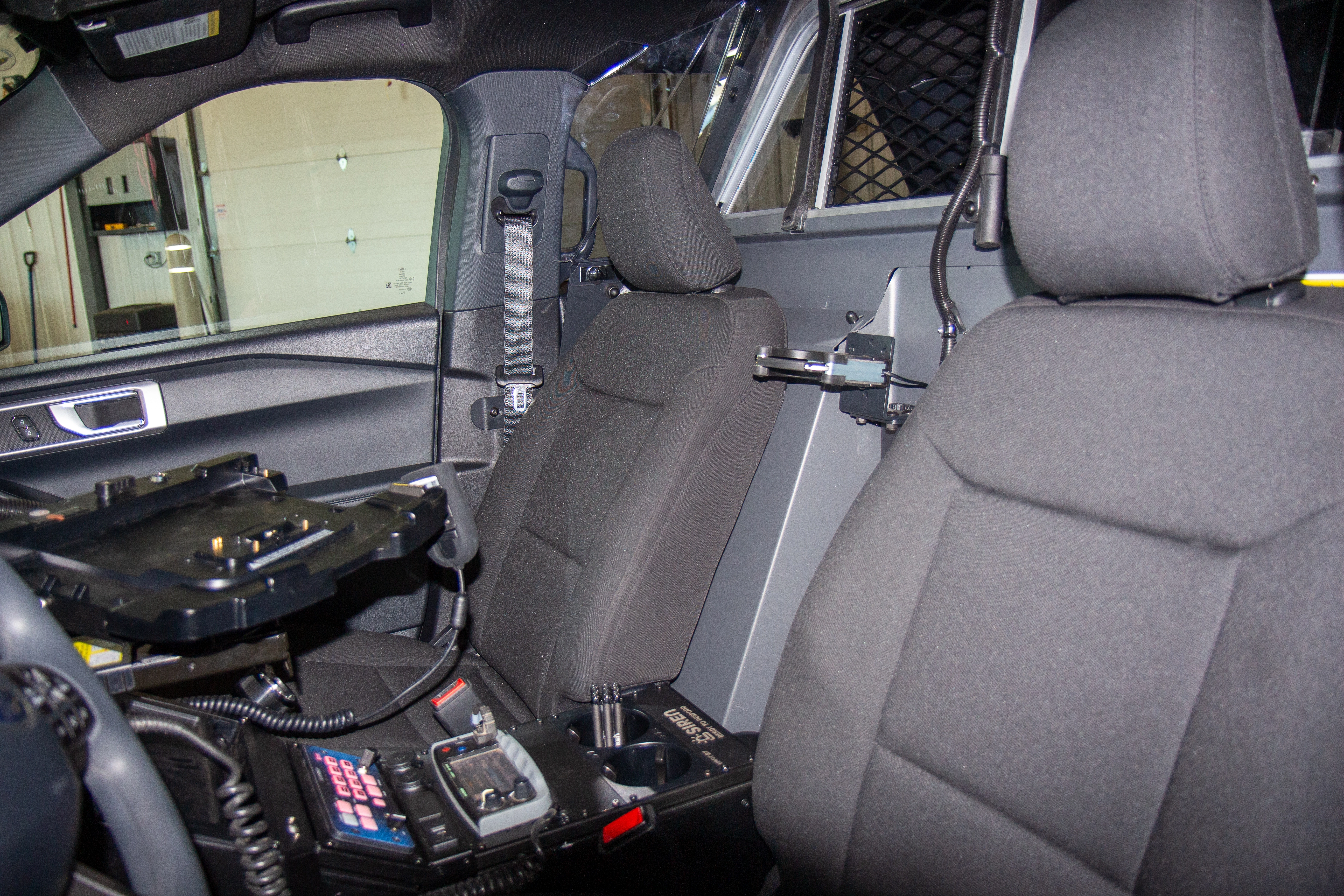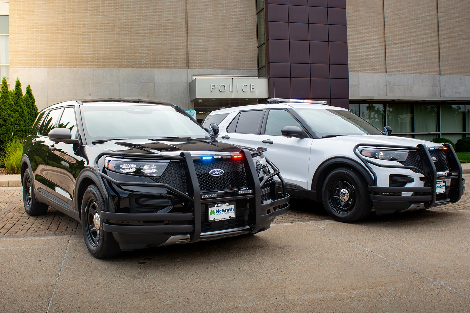 Two new Ford Police Interceptor Utilities were fully upfitted for patrol duty. Equipment from retired vehicles was reconditioned and reused, with new prisoner transport, storage, push bumpers, and updated lighting systems installed for dependable daily use.