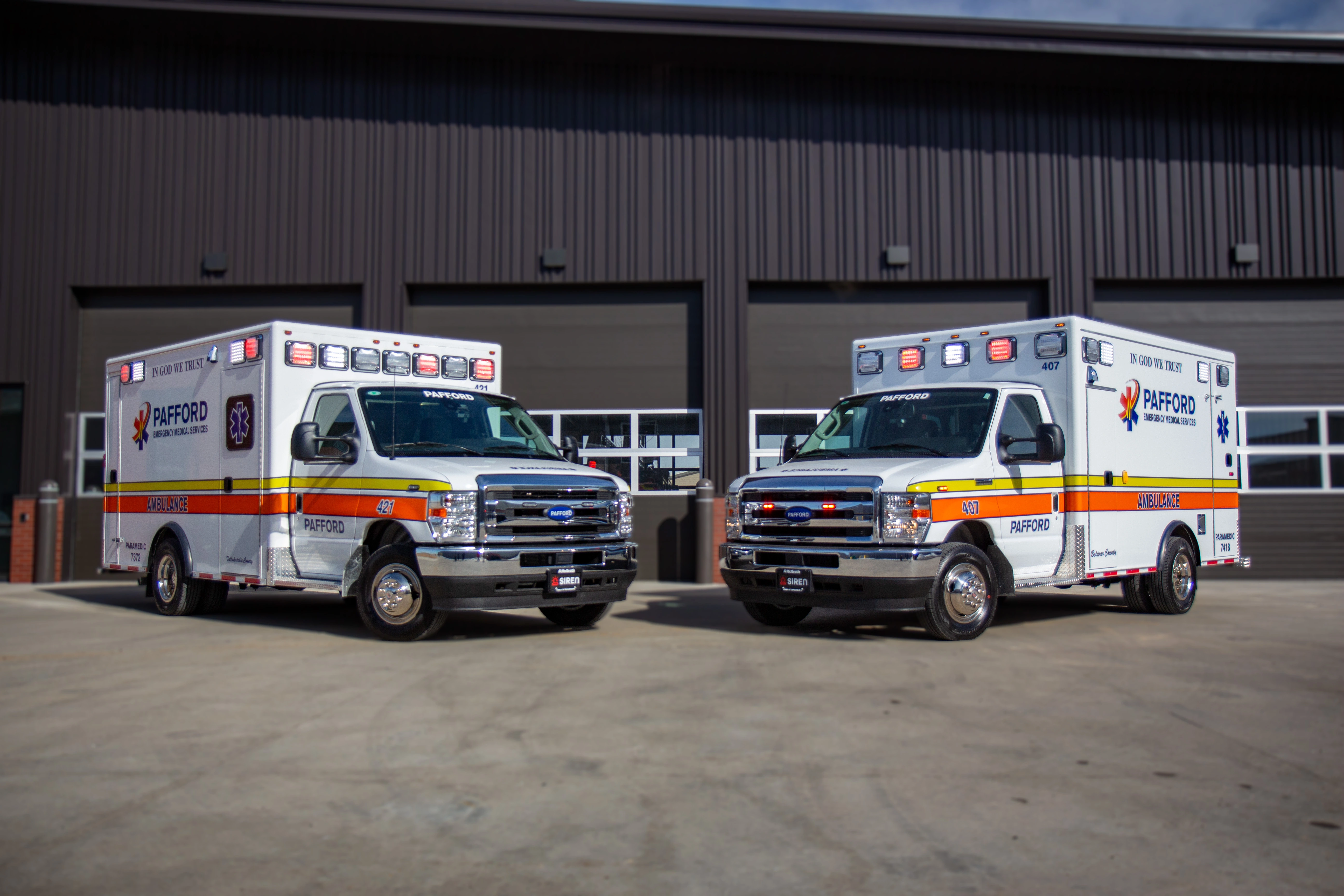 Siren partnered closely with the customer and McGrath Commercial Sales to upfit two retiring units onto new 2026 Ford E-Series chassis. After evaluating which components could be reconditioned, our team refurbished the patient compartments, installed updated exterior and safety equipment, and completed full electrical and HVAC reconnections. Each unit underwent comprehensive function testing, custom vinyl application, and final detailing—delivering two fully refreshed, dependable ambulances ready to serve their communities for years to come.